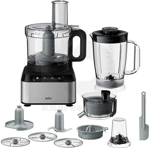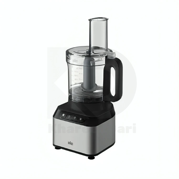 The Braun PurEase Food Processor FP 3235 SI is an 800W, 2.1L, 12-in-1 kitchen appliance designed for chopping, blending, and kneading. It features two speed settings + pulse, dishwasher-safe attachments, and a compact design to maximize counter space. It operates on 220-240V, featuring a 2.1L total bowl capacity and 1.2L usable liquid capacity.